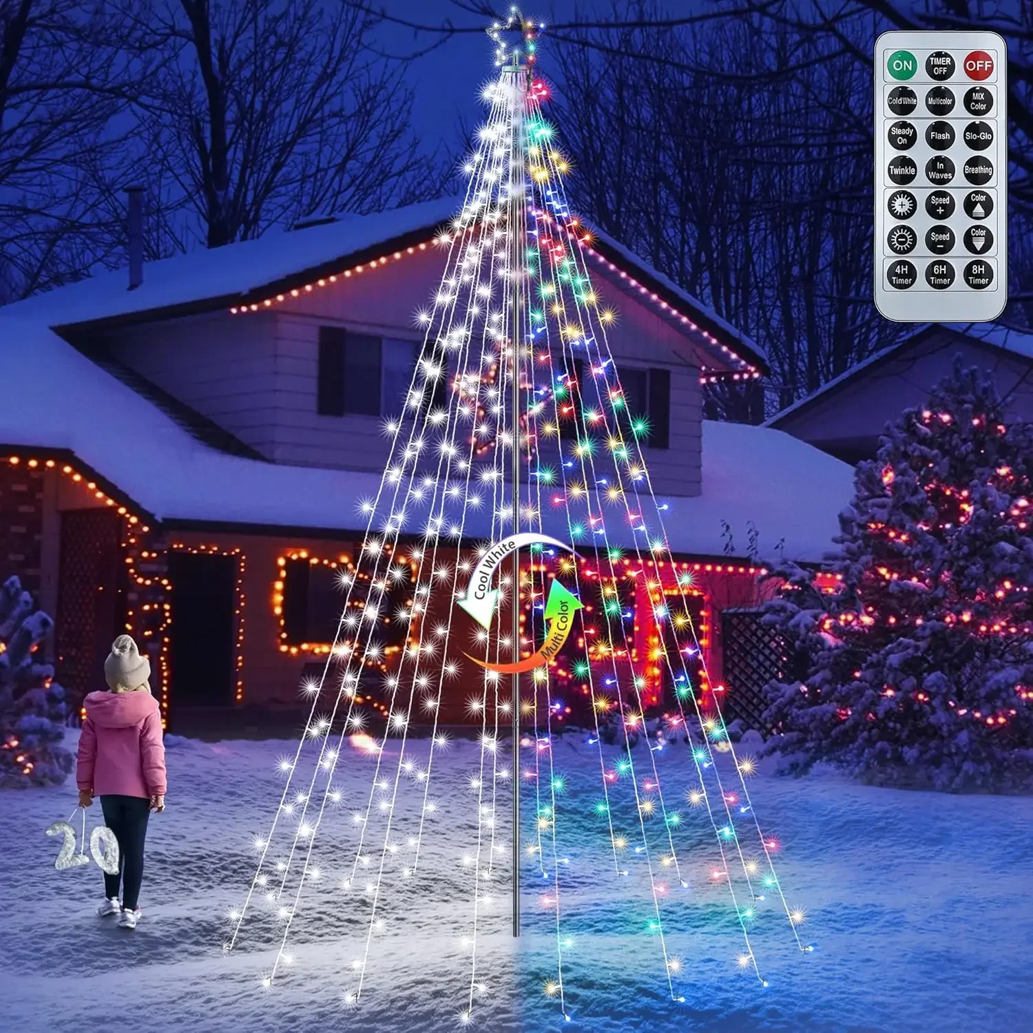 Transform your holiday decor with these dazzling 10-foot Color-Changing Christmas Tree Lights! Featuring 404 vibrant LEDs and a beautiful 7.08″ tree topper, this lighting set creates a breathtaking waterfall effect that will make your home the star of the season. Choose from warm white, multicolor, or a mix of both for an enchanting display that suits any festive mood. With high-quality materials, waterproof construction, and a user-friendly remote, these lights are designed for easy setup and endless enjoyment indoors or outdoors.