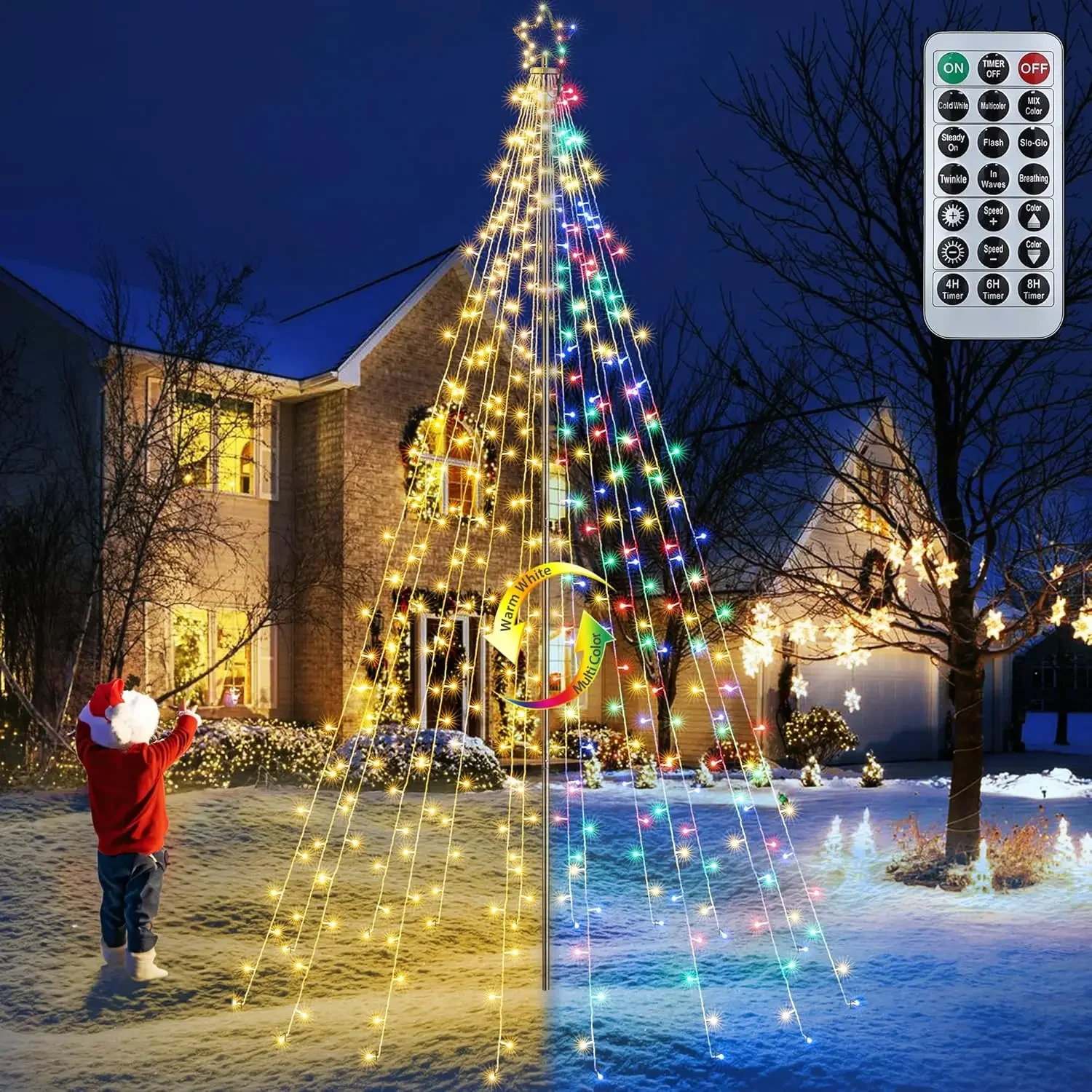 • Color-Changing Options: Easily switch between warm white, multicolor, or a blend of both. Each color mode offers six unique effects, allowing you to create a display that suits your holiday style perfectly.