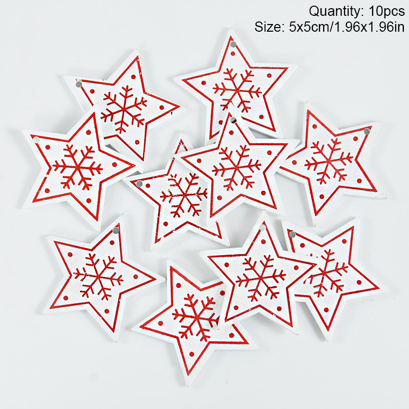 Bring a delightful mix of rustic elegance and festive cheer to your home with these charming wooden snowflake pendants. This set of 10 red and white ornaments is designed to make your Christmas tree or holiday decorations truly stand out. Perfect for New Year and Christmas parties, these pendants are the ideal way to create a warm, festive atmosphere that everyone will love.