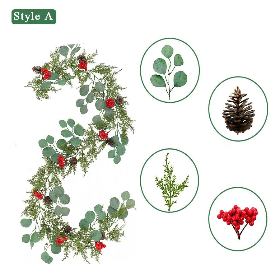 200cm Artificial Pine Garland with Pine Cones, Red Berries, and Greenery