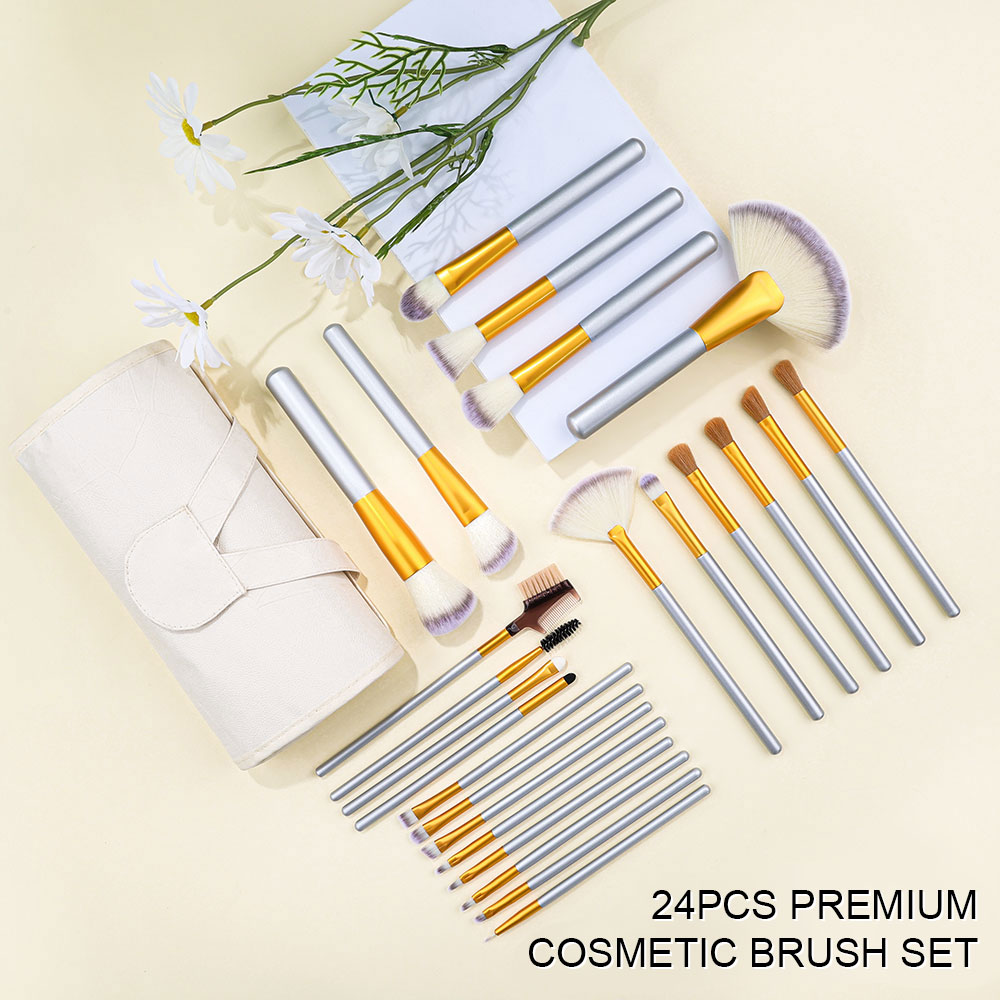 • 24-Piece Complete Brush Collection: Includes every essential brush for face, eyes, and lips, covering all makeup application needs.