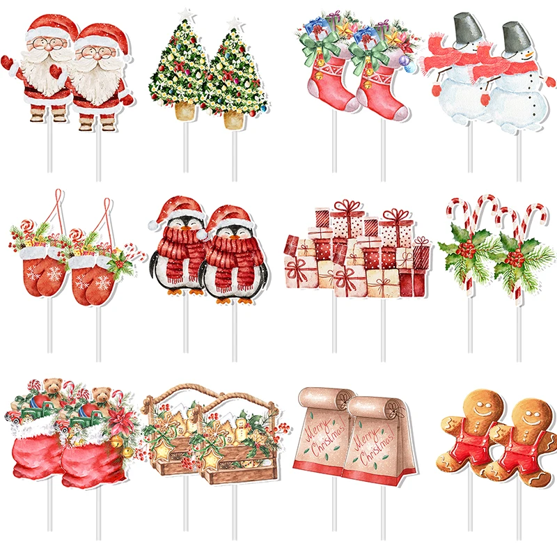 • 24 Unique Toppers: Each set comes with 24 toppers, including Santa Claus, Snowmen, Merry Christmas letters, and winter plants, creating an enchanting display.