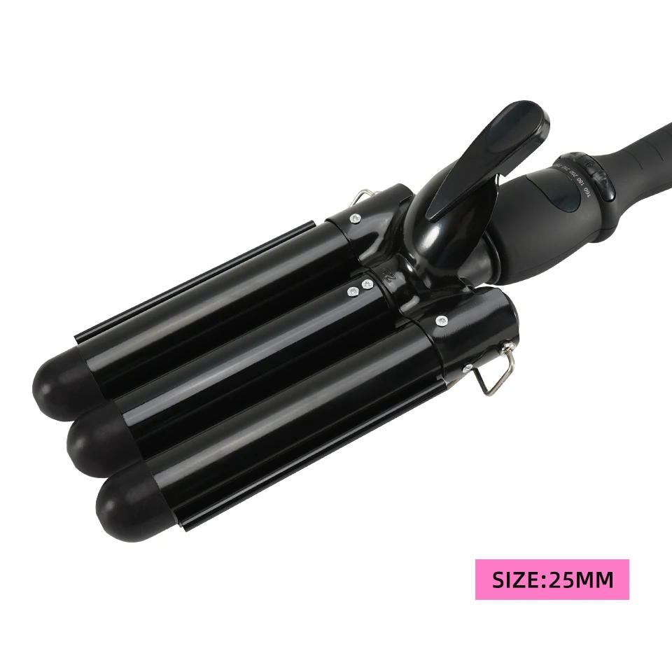 Transform your hair into effortless waves with the 3-Barrel Electric Hair Curling Iron. Perfect for creating beachy, “S” waves, this curling wand is designed to make stunning waves in minutes. With a fast-heating ceramic-coated design, this iron ensures consistent heat without hair damage, so you get silky, frizz-free curls every time. Ideal for all hair types, from fine to thick, the adjustable temperature and LCD display give you total control over your look, whether you’re going for soft waves or defined curls.