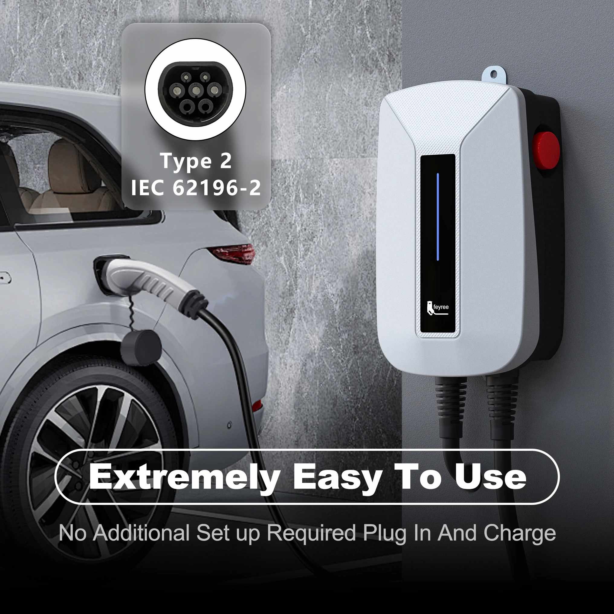 32A EV Charger Type 2 Plug 7kW Wallbox with 16 ft Cable – Fast & Safe Charging