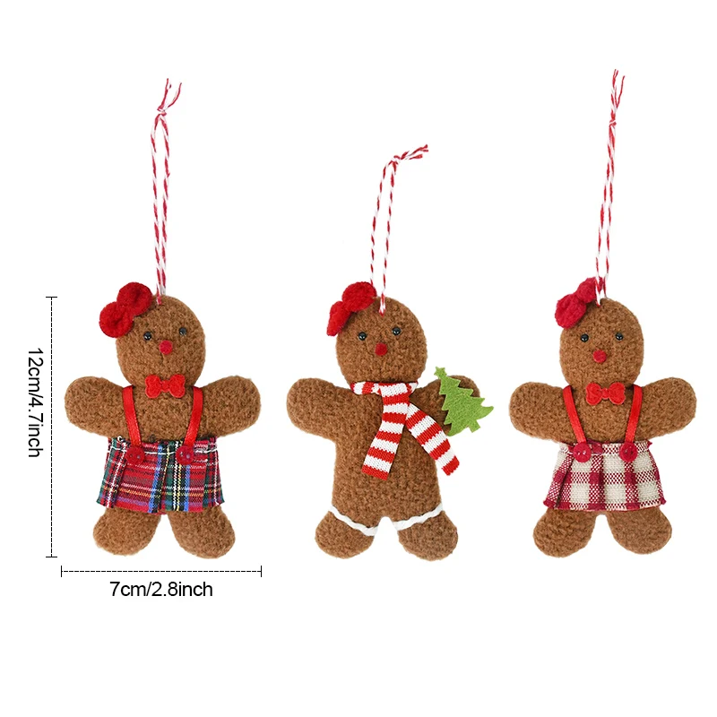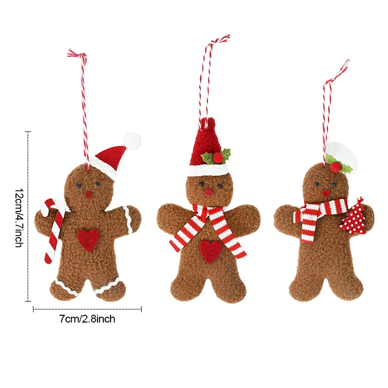 3Pcs Gingerbread Man Doll Ornaments for Christmas Tree Decor