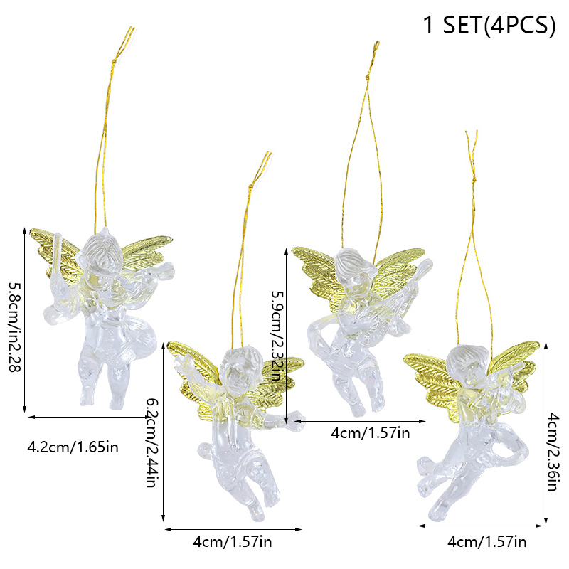 4pcs Transparent Angel with Gold Wings Christmas Tree Ornaments