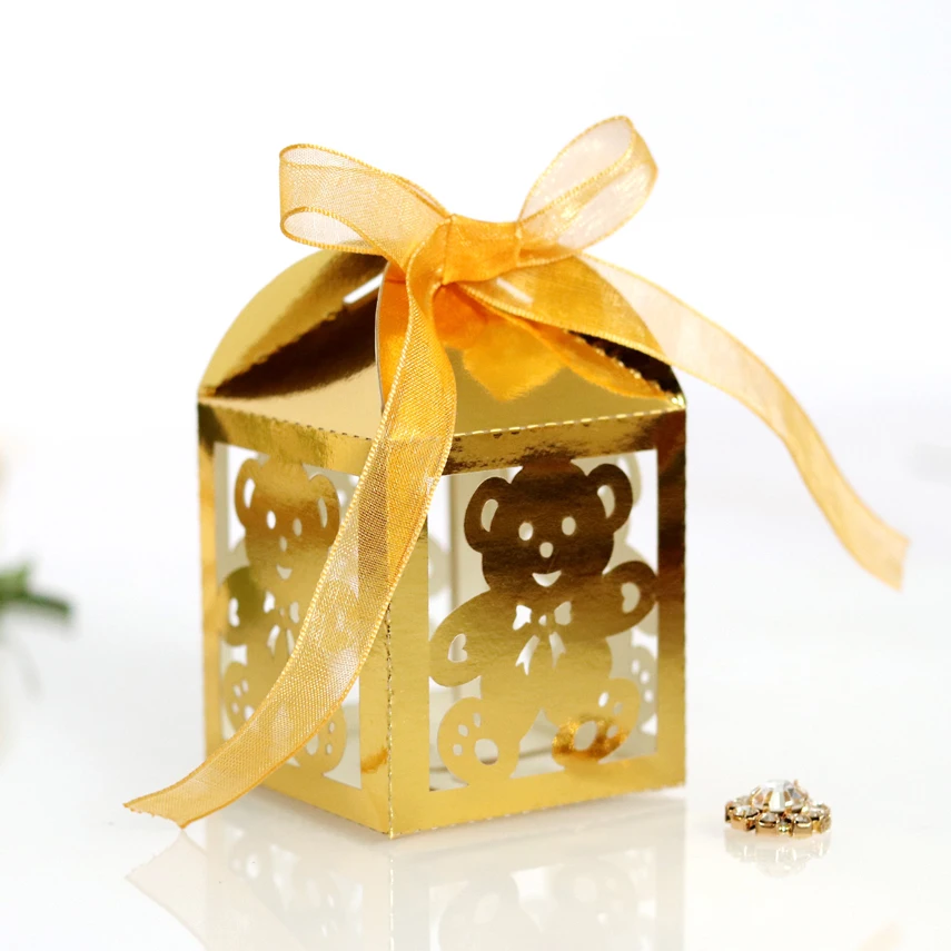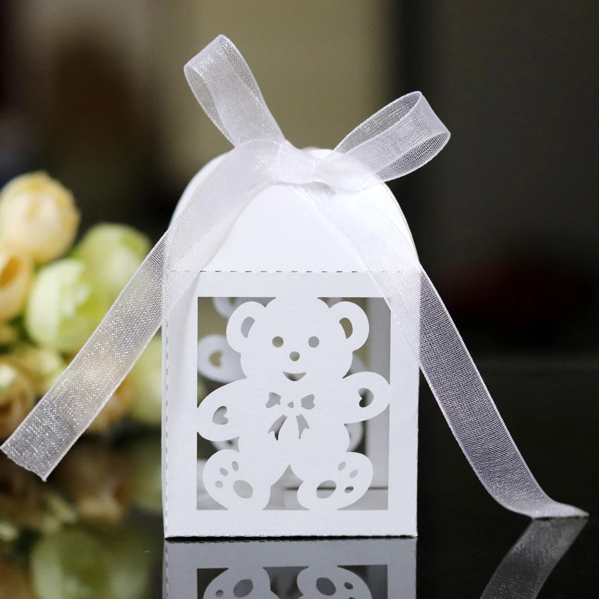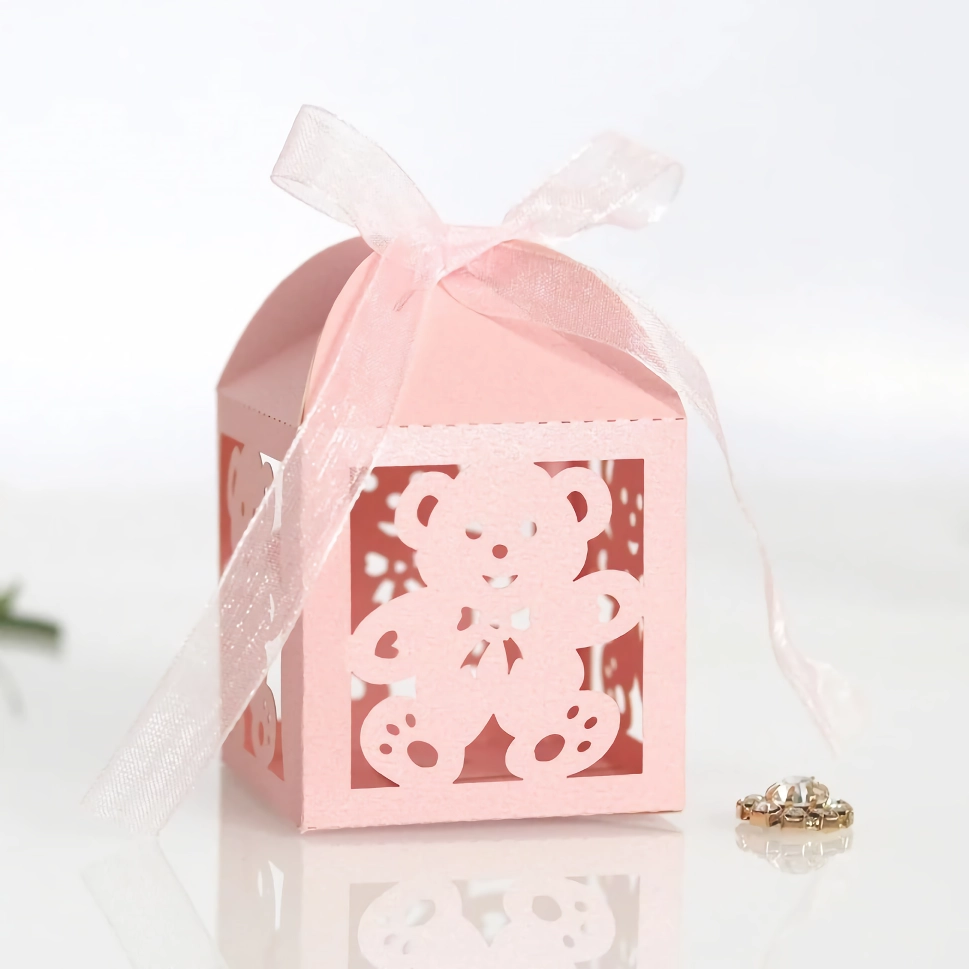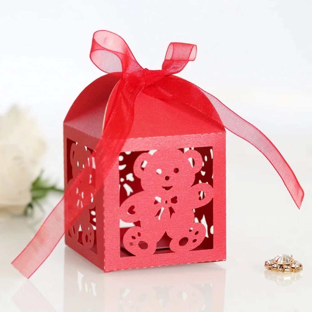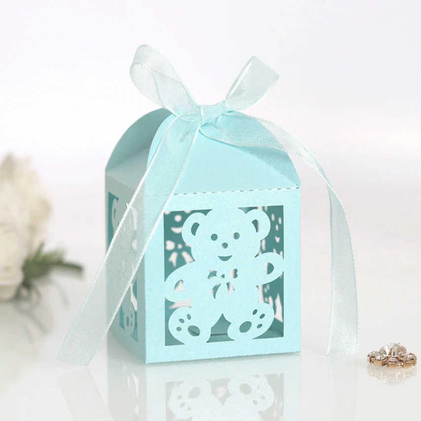 Bring a touch of charm to your celebrations with our 50pcs Blue Bear Candy Boxes. These delightful candy boxes feature a fun laser hollow design of a cute blue bear, making them perfect for children’s parties, baby showers, weddings, and festive events like Christmas. Made from high-quality paperboard, these boxes are both durable and visually appealing, ensuring that your treats stand out.