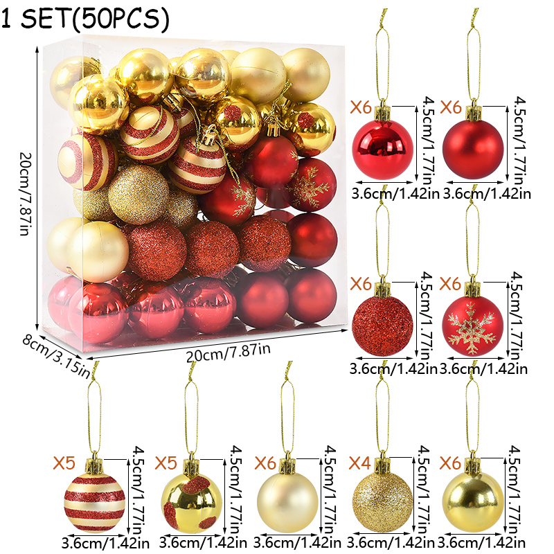 50Pcs Christmas Ball Ornaments Hanging Pendant for Tree and Party Decoration