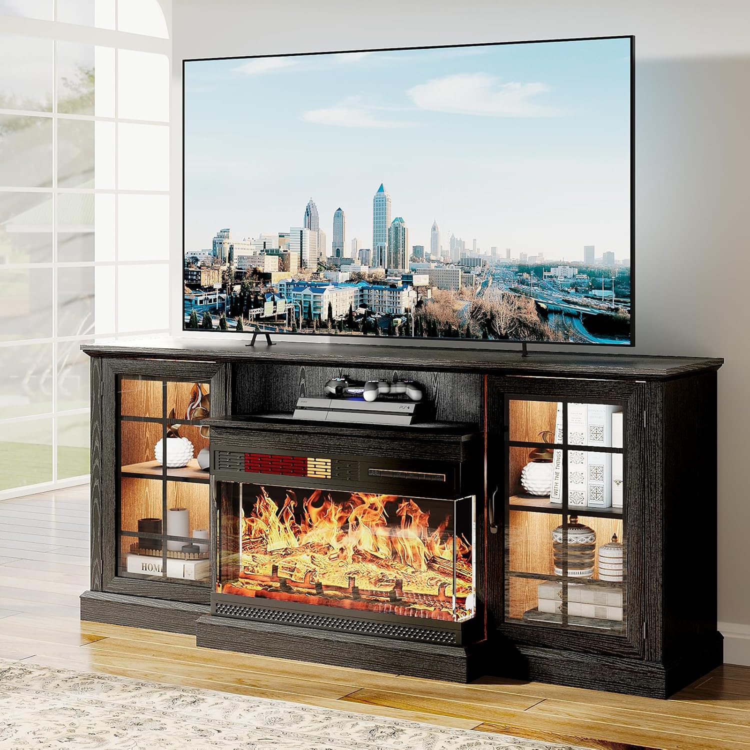 59″ Fireplace TV Stand with Glass Doors for TVs up to 65″