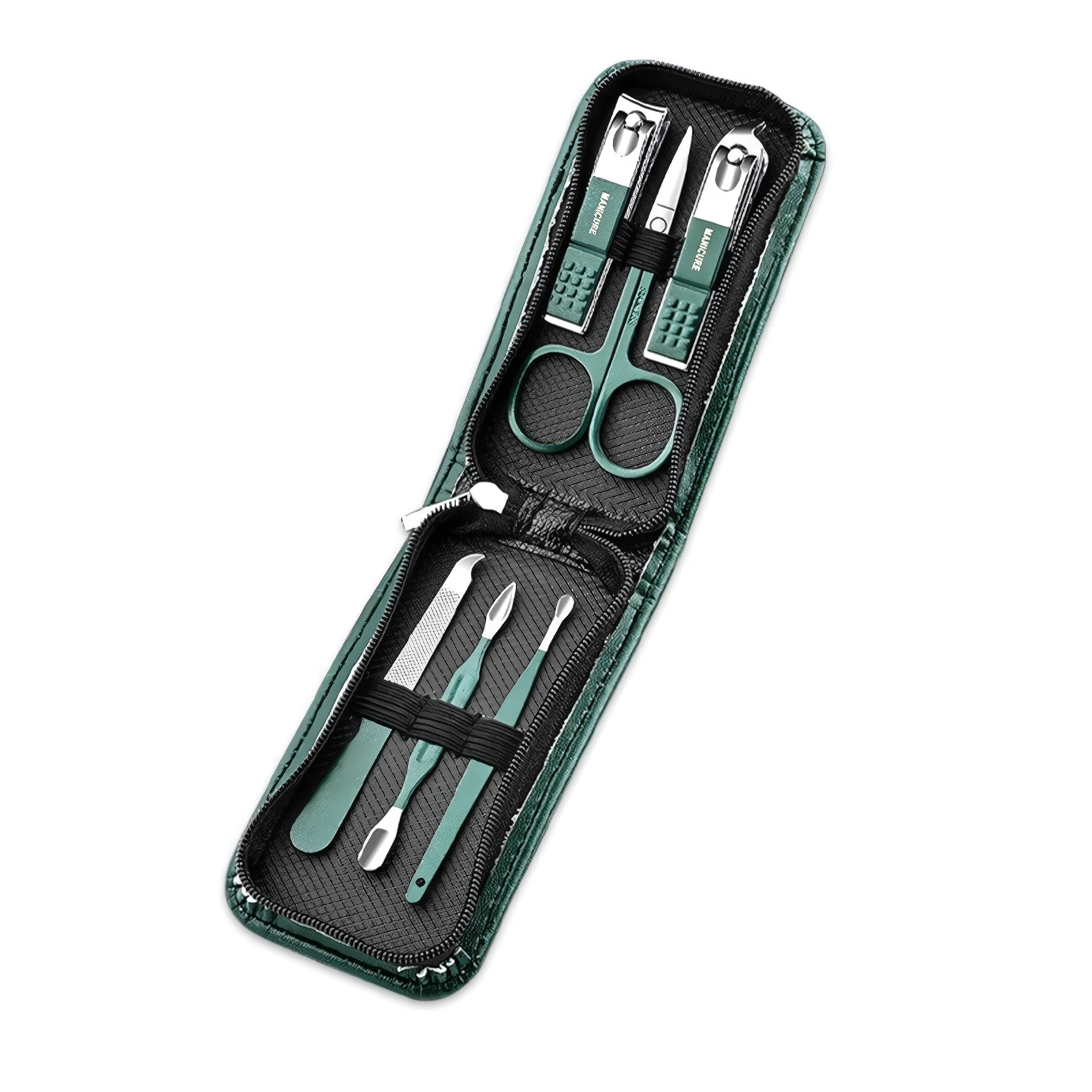 6-Piece Black/Green Stainless Steel Manicure & Pedicure Set with Storage Bag