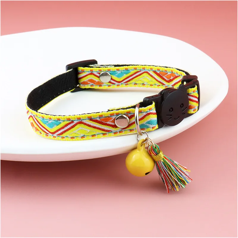 Give your beloved furry friend a stylish and comfortable accessory with this adjustable cat collar. Featuring a colorful plaid jacquard pattern, tassels, and a soft-sounding bell, this collar is perfect for adding personality and flair to your pet’s daily wear. Designed with a cat head quick buckle for convenience and safety, this collar offers both functionality and charm.