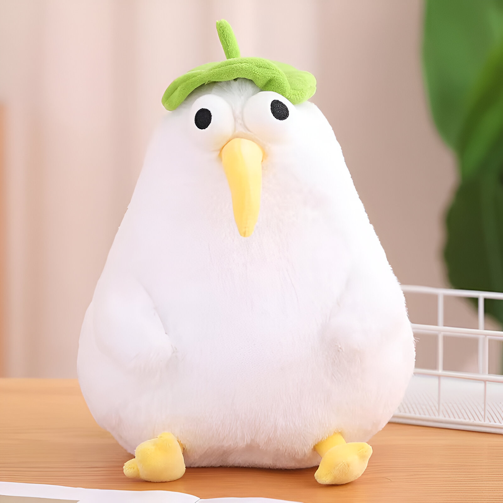 Cuddle-Ready Kiwi Bird Plush with Lotus Leaf – A Unique, Cozy Companion