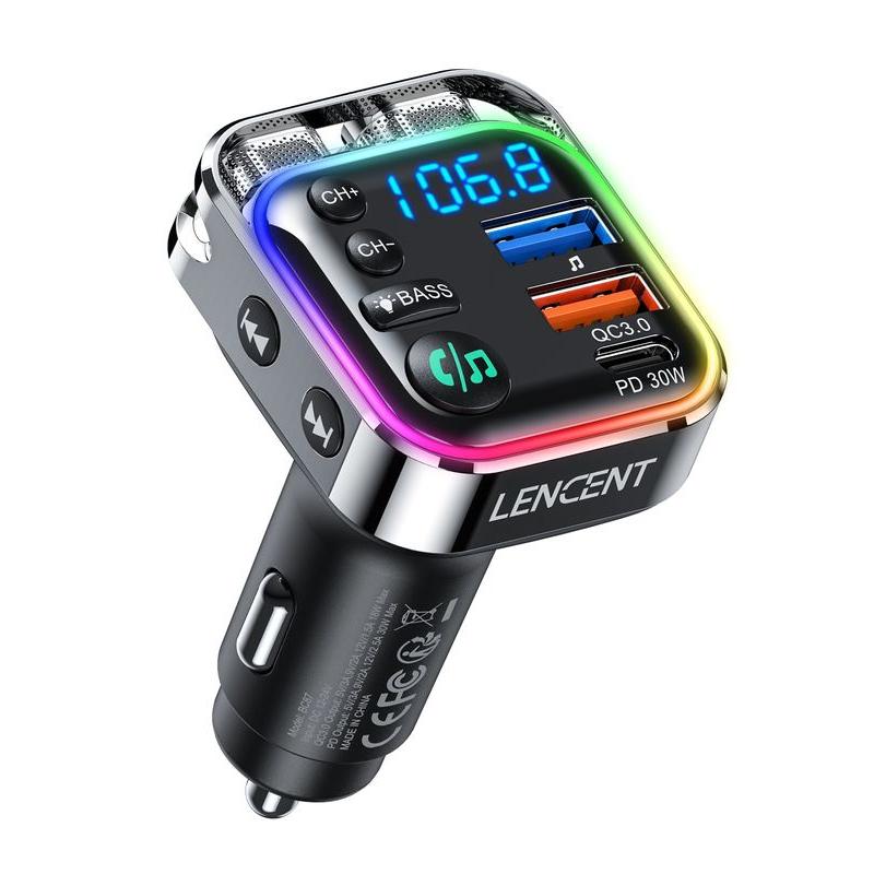 Bluetooth 5.3 FM Transmitter with 30W PD & QC3.0 Fast Charger, Hi-Fi Sound