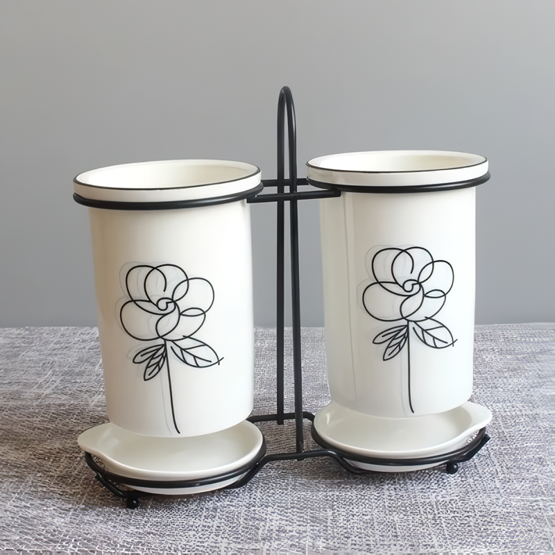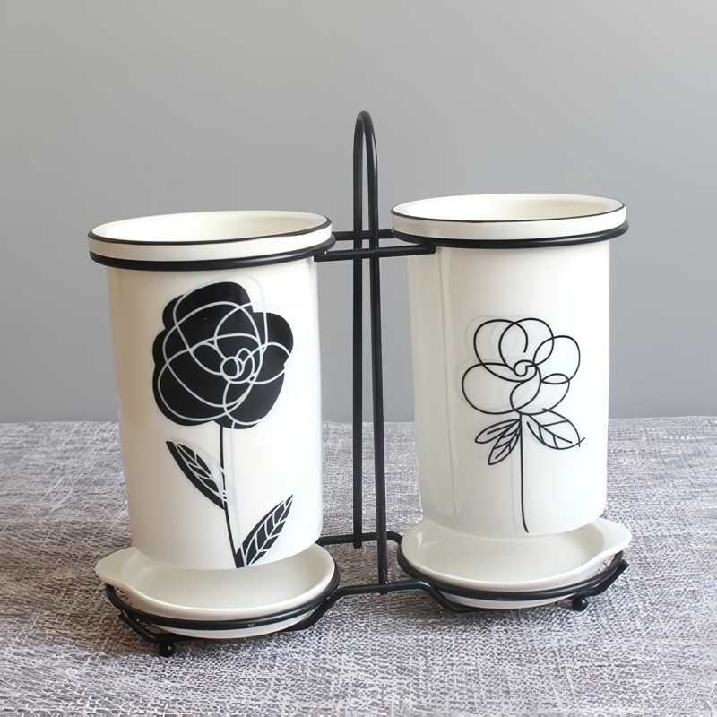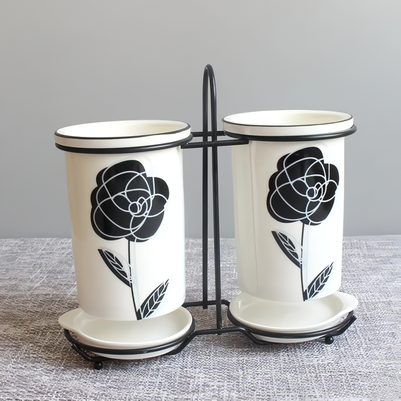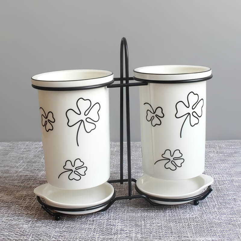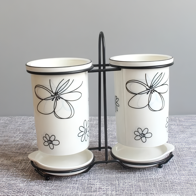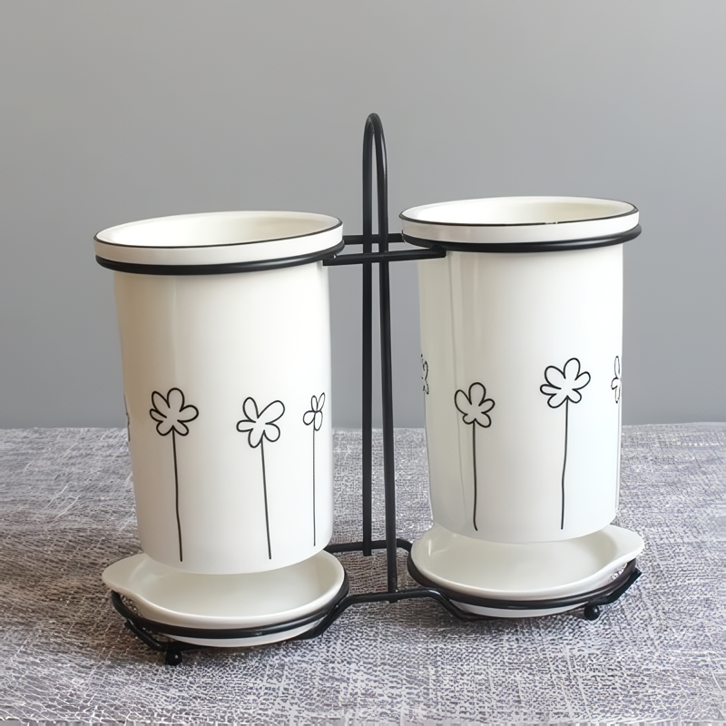 Ceramic Chopsticks and Utensil Storage Set with Drainage Rack