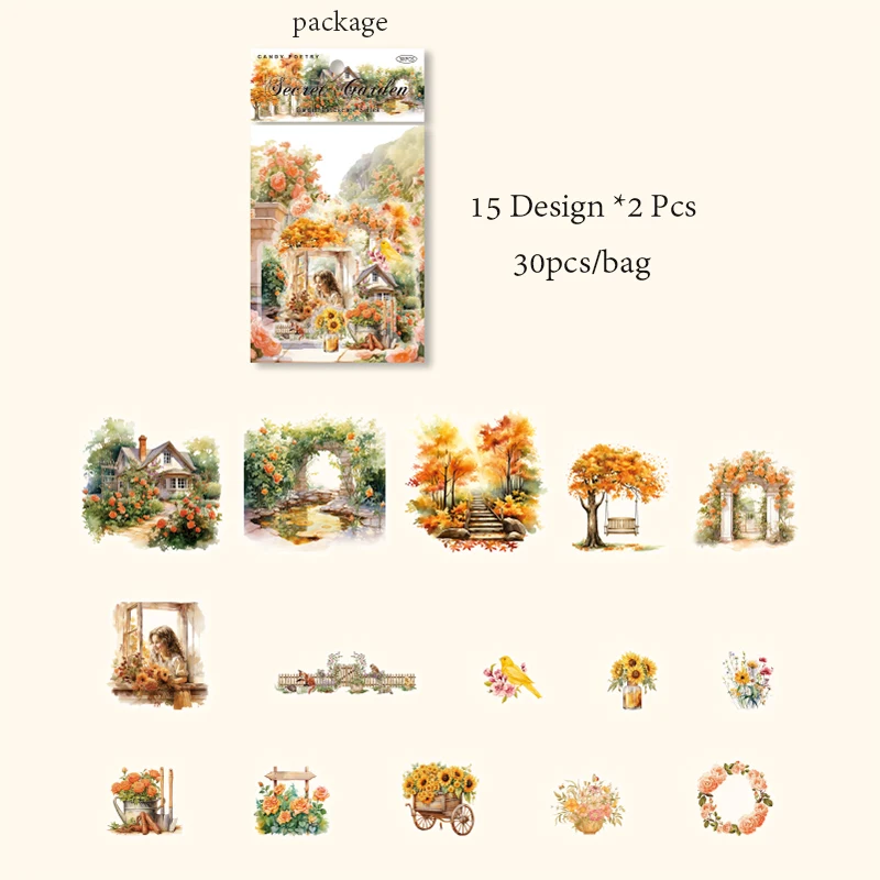 Charming Garden Landscape Stickers – 30 Pieces for DIY Craft & Journals