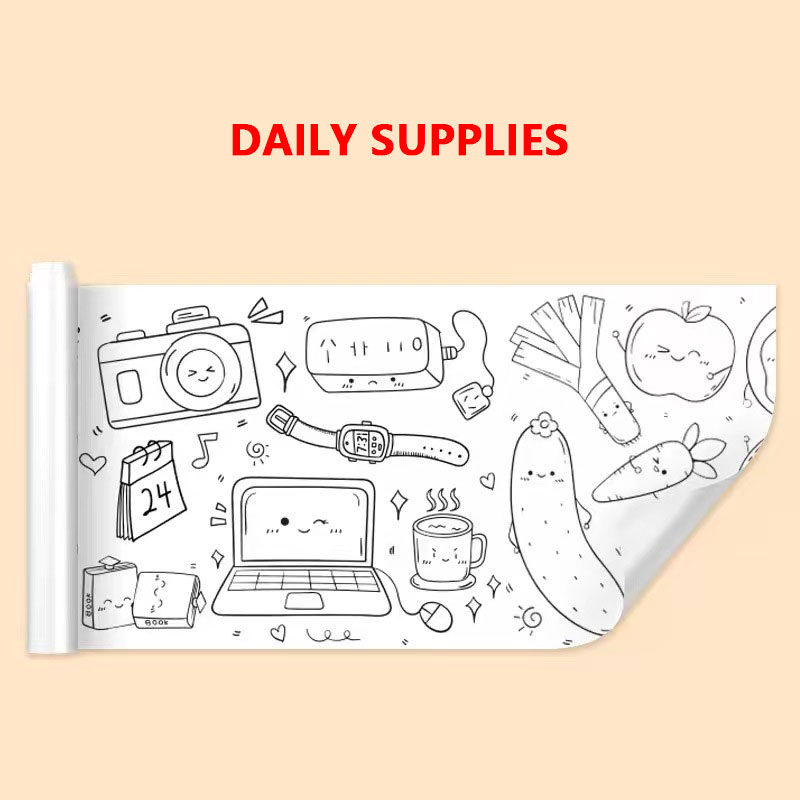 Our DIY Coloring Paper Roll is crafted from high-quality, durable paper, designed to handle coloring tools of all types without tearing. With a sticky backing, it can be placed on walls, tables, or any smooth surface, creating an easy-to-use canvas for your child’s masterpiece. The roll’s large design allows plenty of space for children to color their favorite scenes, from animals to nature, and so much more. It’s safe, fun, and highly engaging for children of all ages.