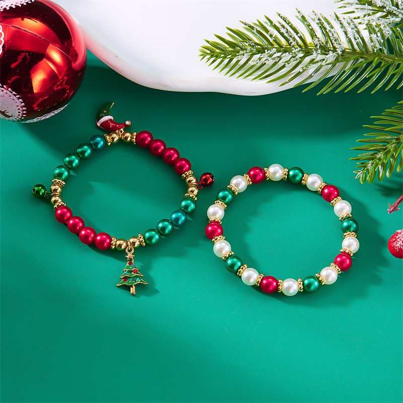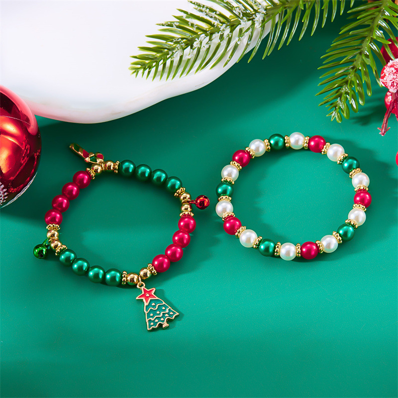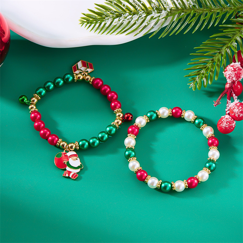 Made with high-quality zinc alloy and a durable rope chain, these bracelets are designed to bring a fun and festive touch to your holiday accessories. The combination of colorful beads and imitation pearls gives them a playful yet elegant appearance, making them perfect for both casual and dressy occasions. The Christmas-themed charms — Santa, snowman, and Christmas tree — capture the joy and spirit of the season, making them a must-have for your Christmas jewelry collection.