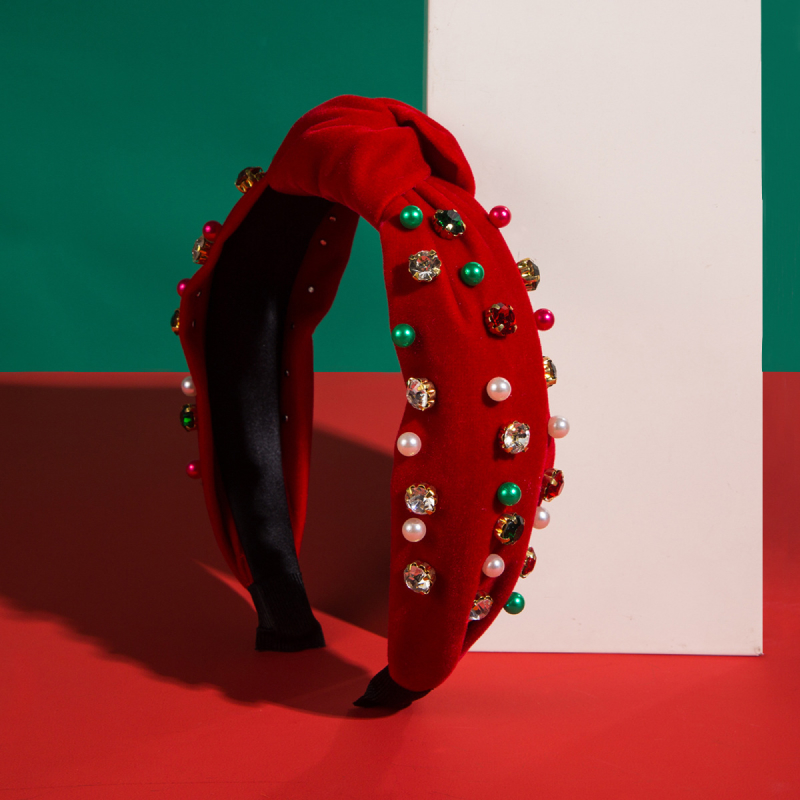 Christmas Pearl Rhinestone Twist Braid Headband