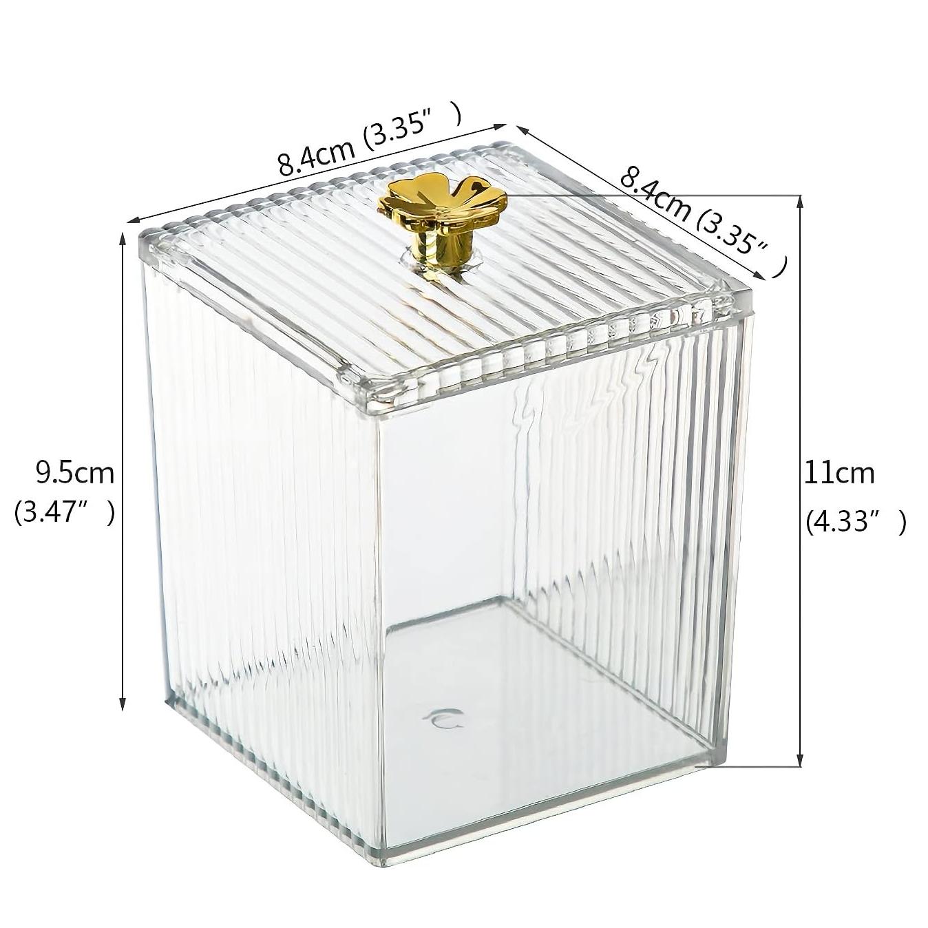 Elevate your beauty and bathroom organization with our versatile Clear Acrylic Cotton Pad & Swab Holder – the perfect addition to any vanity, bathroom, or makeup station. Crafted from high-quality, eco-friendly, glossy plastic, this multi-functional storage box keeps your essentials neatly arranged and dust-free, ensuring your cotton pads, swabs, makeup sponges, and jewelry are always within easy reach. This sleek, modern-style container offers a touch of sophistication and a clutter-free solution that blends seamlessly with any decor.