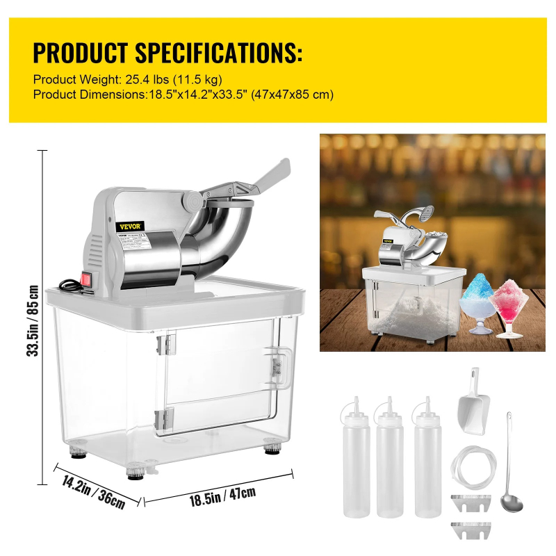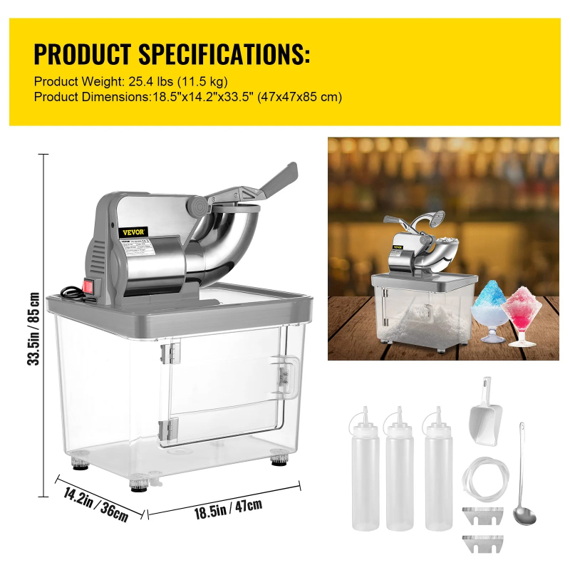 Ready to elevate your events and delight your guests? Add the Commercial Electric Ice Crusher Machine to your toolkit today and enjoy soft, fluffy ice at the touch of a button. Whether for professional use or home entertainment, this machine delivers unparalleled quality and performance every time. Don’t settle for less – make every chill moment unforgettable!