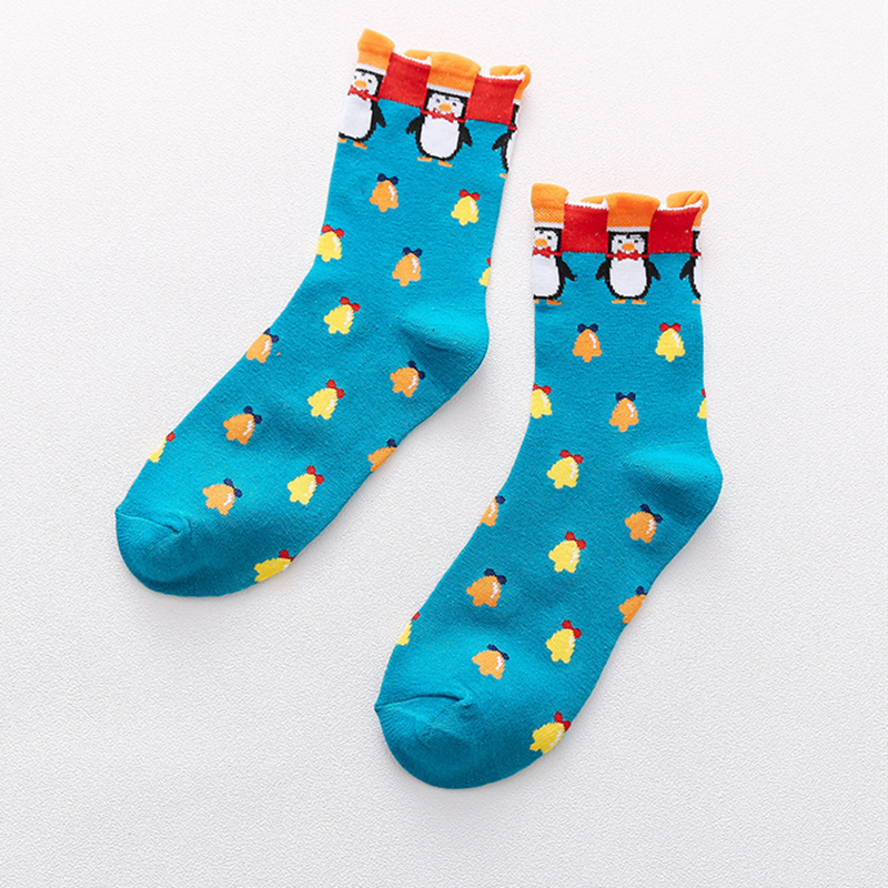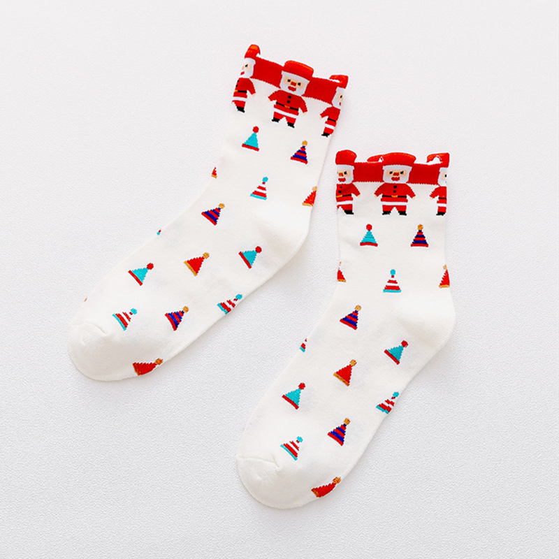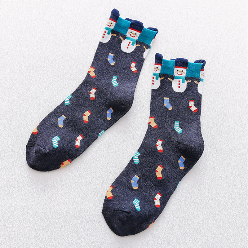 Embrace the festive season with these delightful Cotton Christmas Socks, featuring cheerful Santa Claus, Christmas trees, snowflakes, and playful elk patterns. Perfect for autumn, winter, and the New Year, these socks bring a dash of holiday joy to your outfit. Designed for comfort and style, they are an ideal addition to your winter wardrobe or a thoughtful gift for a loved one.