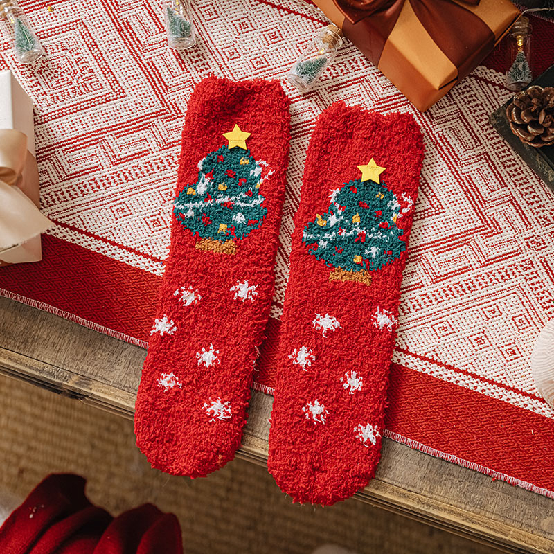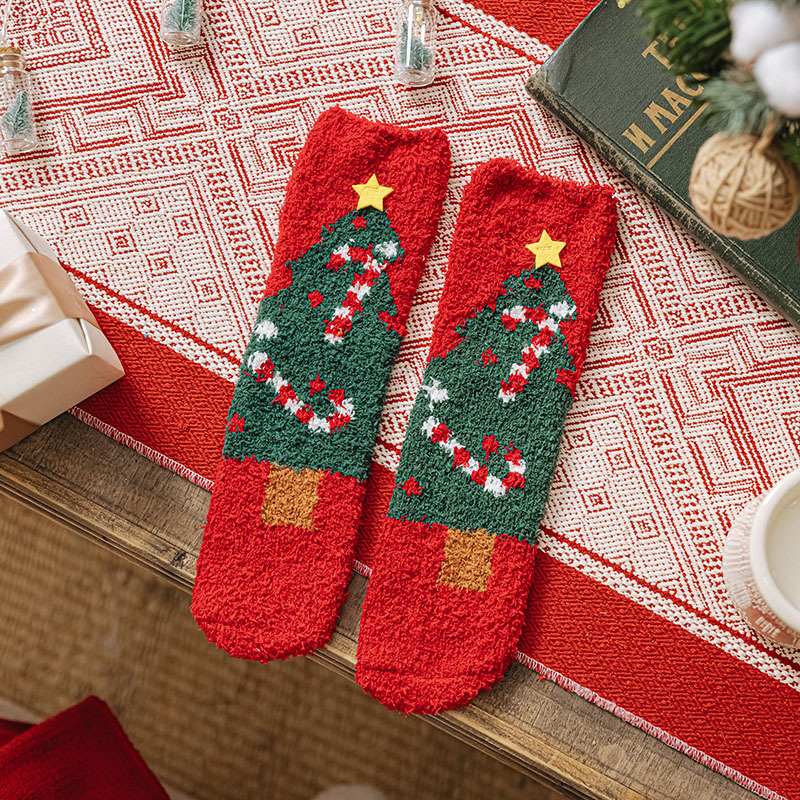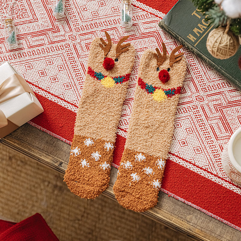 Cozy Christmas Coral Fleece Mid-Tube Socks