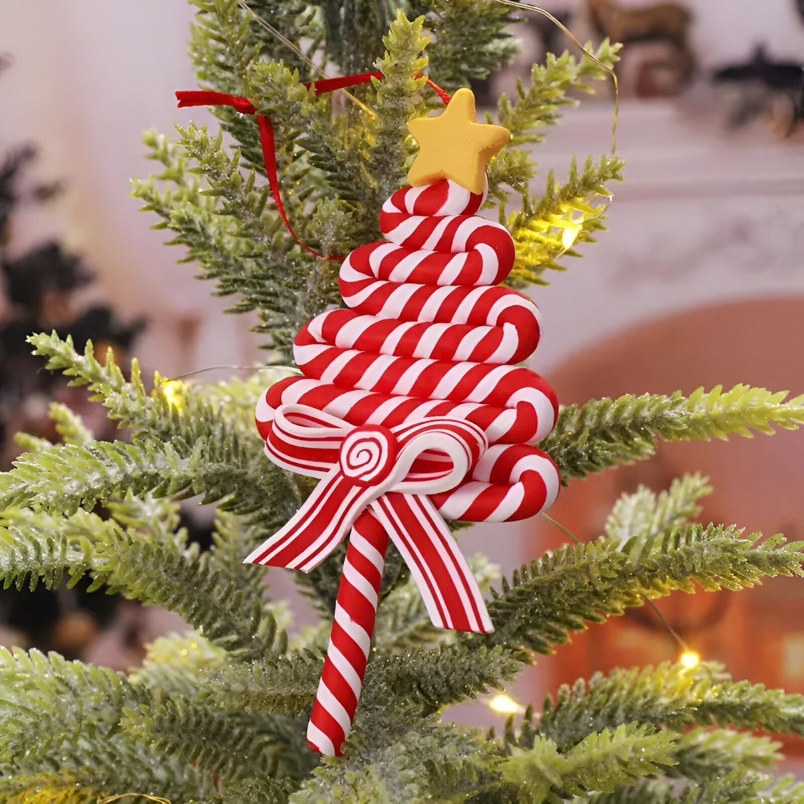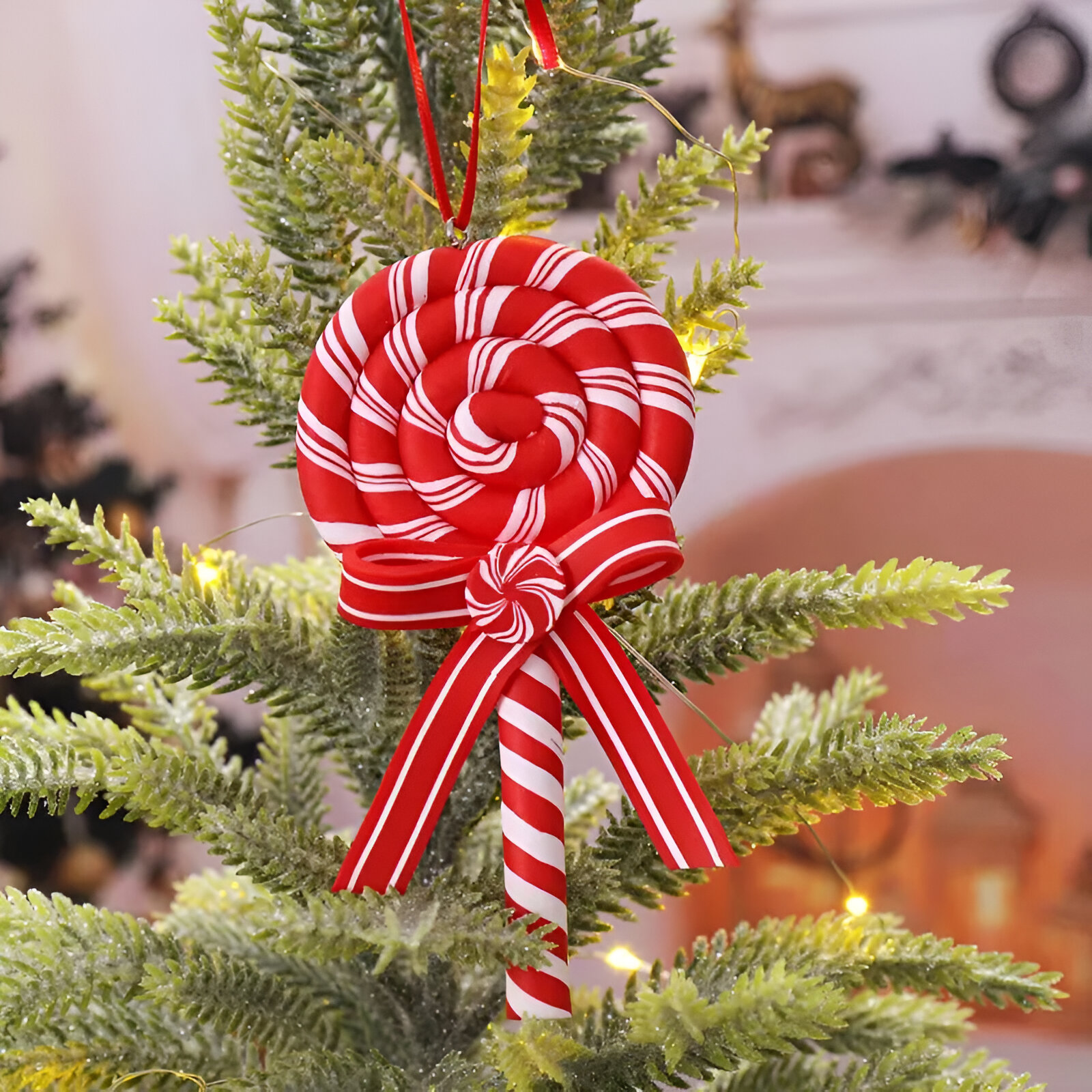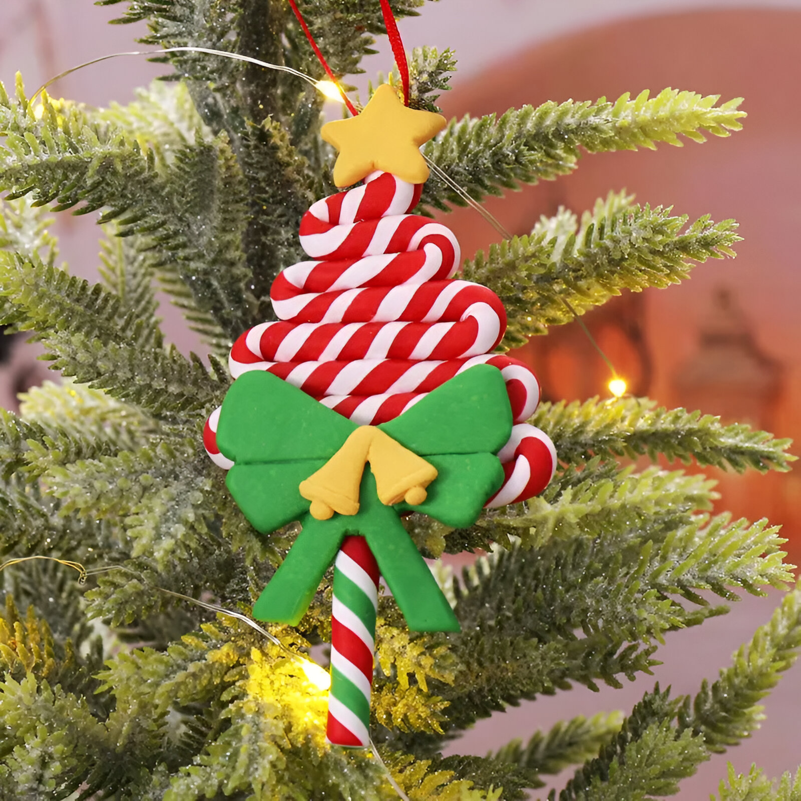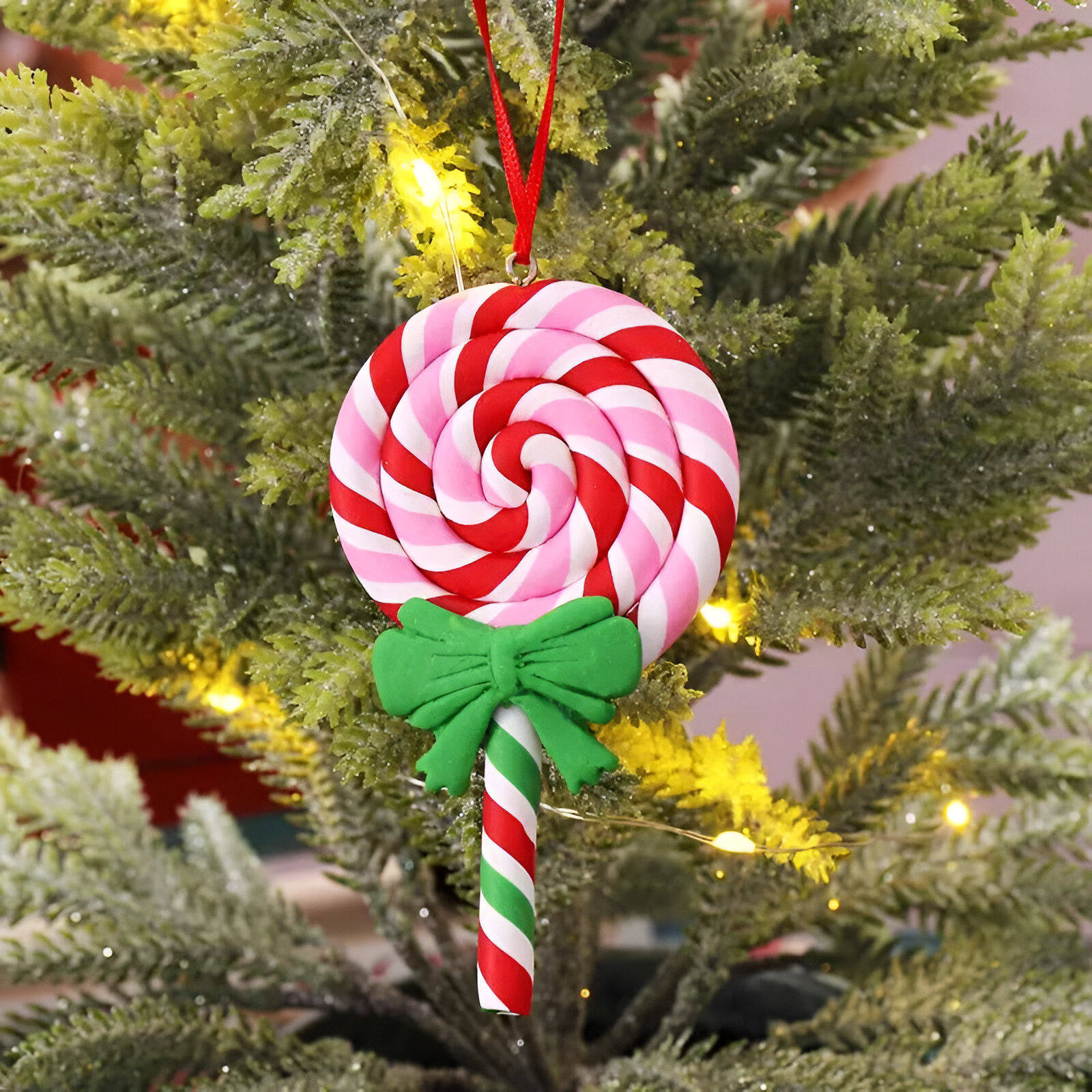 Cute Clay Lollipop Christmas Tree Ornament with Bowknot Decoration