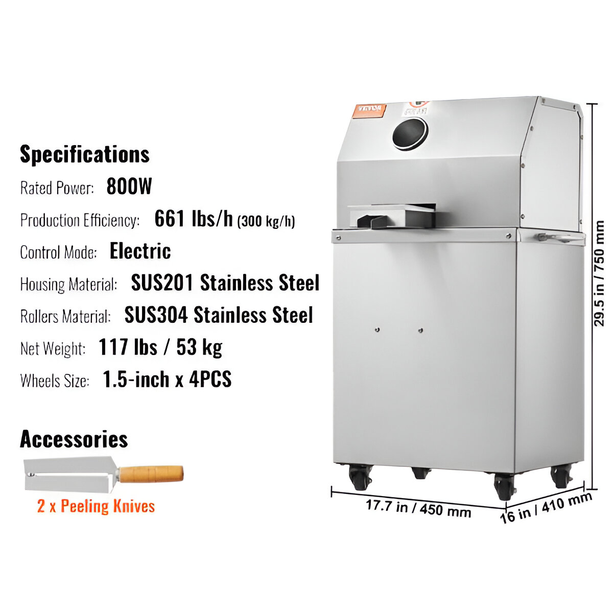 • Efficient Performance: Powered by a high-performance motor, this machine processes up to 661 lbs of sugarcane per hour, ensuring a steady supply of juice for any occasion.