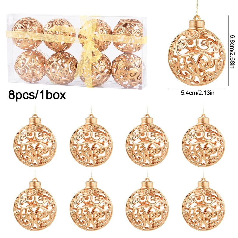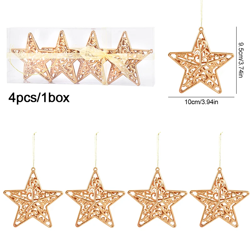 Bring magic to your Christmas decor with these exquisite Gold Hollow Star Christmas Ball Ornaments, designed to make your tree sparkle with a festive glow. Each set includes 4 or 8 stunning gold star pendant ornaments, perfect for adding elegance to any Christmas tree, wreath, or holiday arrangement. These intricately crafted decorations capture the spirit of the season, making your home feel warm, festive, and inviting for Christmas and beyond.