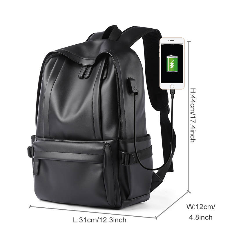 Fashionable Waterproof Leather Backpack with USB & 14-Inch Laptop Compartment