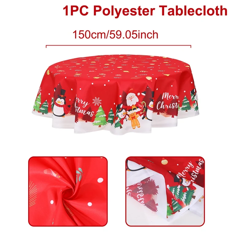Transform your dining experience this holiday season with our 60-inch round Christmas tablecloth, perfect for adding festive charm to any gathering. Featuring classic holiday characters like Santa Claus, reindeer, snowmen, and delicate snowflakes, this tablecloth instantly elevates your decor with joy and cheer. Designed with high-quality PVC material, it’s both waterproof and stain-resistant, making it ideal for any setting, whether it’s a lively family dinner or a cozy holiday brunch.