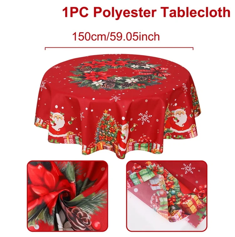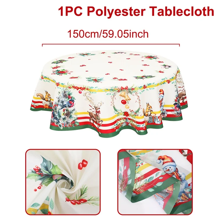 Festive 60-Inch Round Christmas Tablecloth