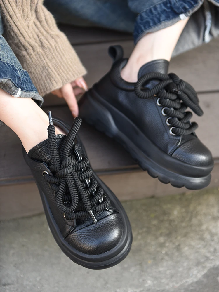 Step into sophistication with these genuine leather platform lace-up shoes designed for women who value style and comfort. These shoes feature a 2-inch thick heel for a flattering lift while maintaining ultimate comfort throughout your day. Perfect for casual outings, workdays, or leisure strolls, these shoes will quickly become your go-to footwear for any occasion.
