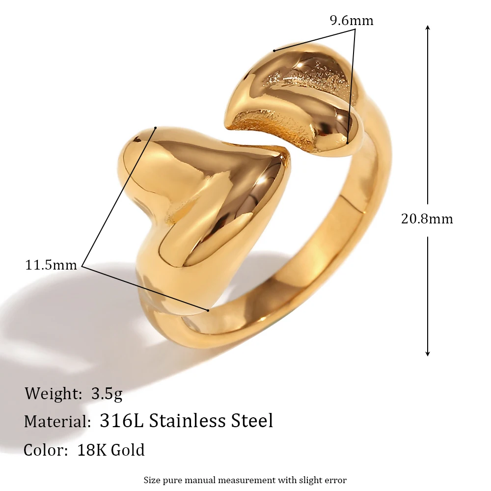Gold Plated Double Heart Open Ring – Hypoallergenic Stainless Steel