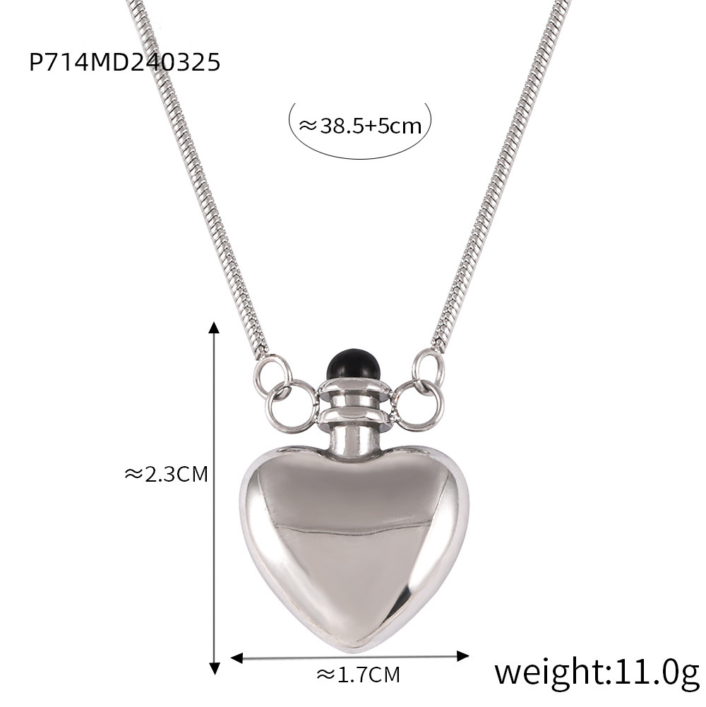 • Elegant Design: A heart-shaped bottle pendant that adds charm and uniqueness to your look.