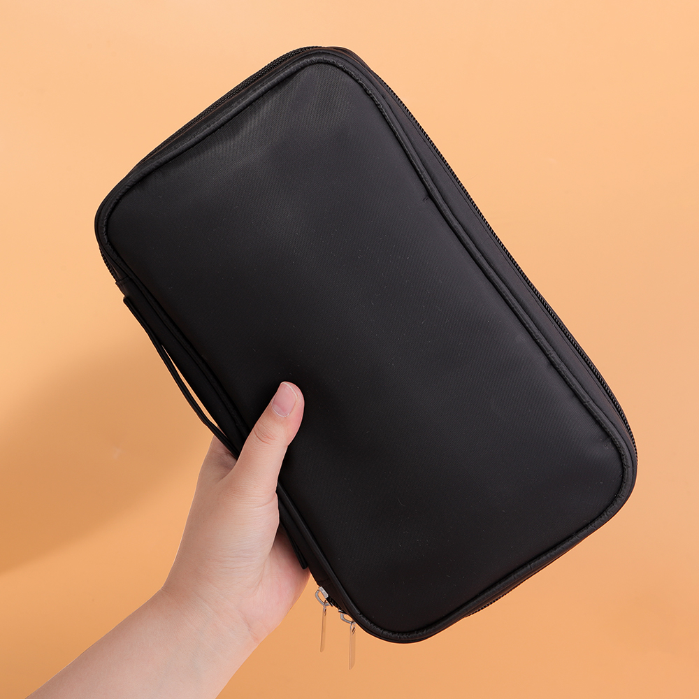 High Capacity Black Canvas Makeup Brush Organizer Bag