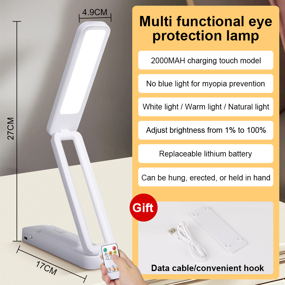 LED Folding Desk Lamp with Remote Control, Dimmable Eye Protection Night Light