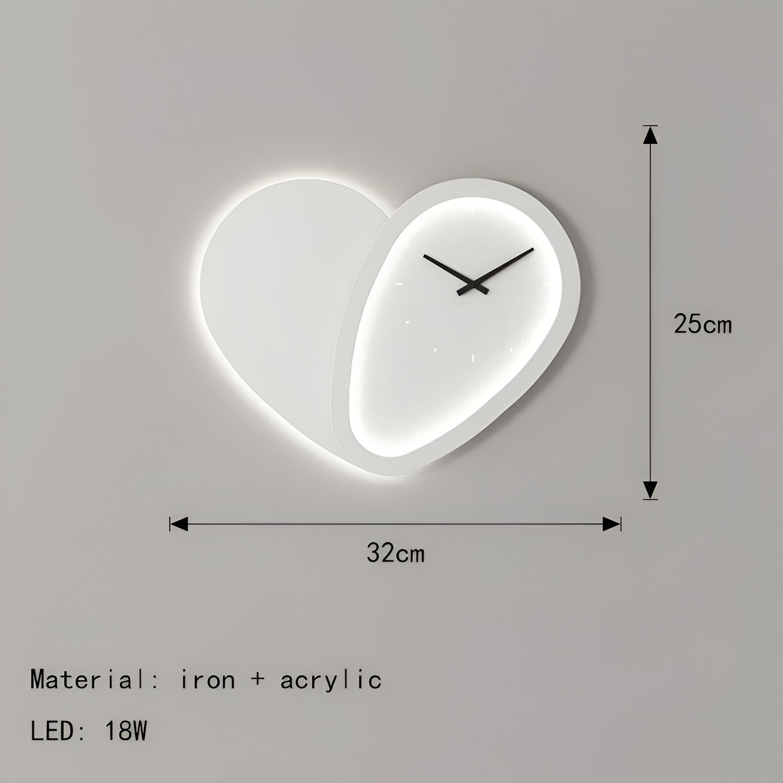 Bring warmth and charm to your home with this unique Love-Shaped Wall Lamp with Clock. This dual-purpose wall sconce combines the elegance of modern lighting with the functionality of a sleek wall clock, creating a delightful statement piece perfect for any room. Designed with a soft, romantic heart shape, this wall lamp adds a cozy glow to your space, making it ideal for your bedroom, living room, foyer, or even a reading nook.