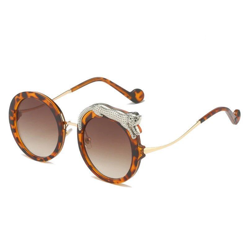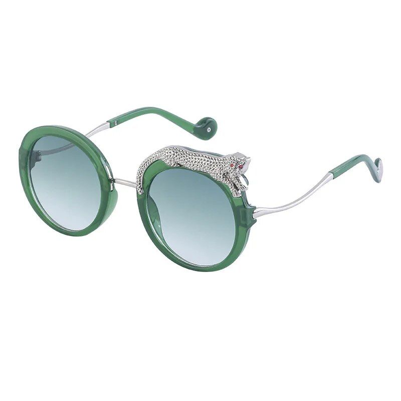 Luxury Crystal Leopard Round Sunglasses with UV400 Protection