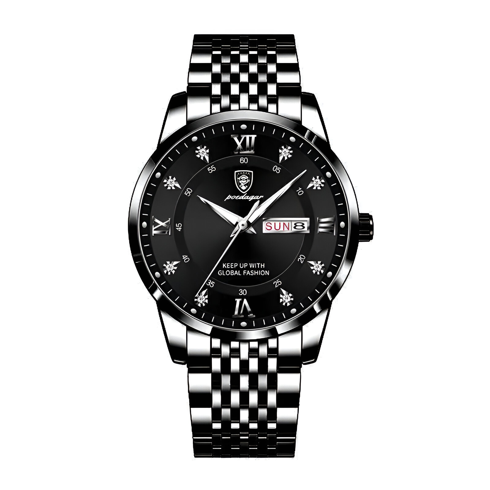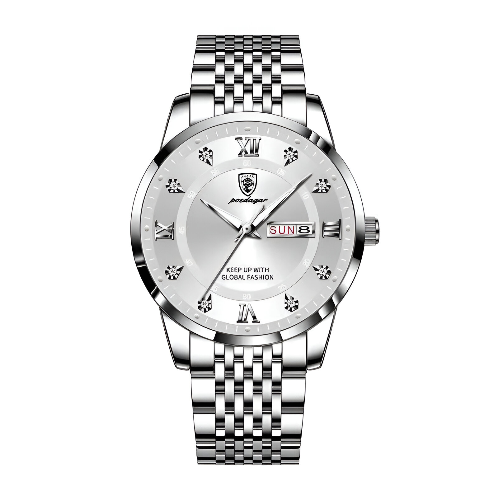 Luxury Men’s Business Quartz Watch – Waterproof Stainless Steel Wristwatch with Date & Week Display