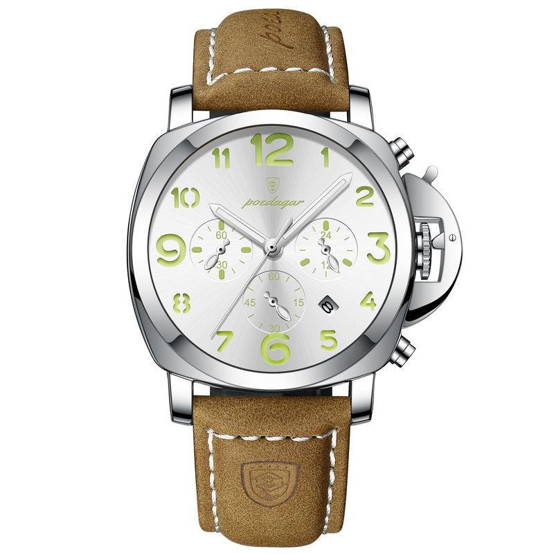 The Luxury Military Quartz Watch stands out with its impeccable design and practical features. Its luminous display ensures visibility in any lighting, while the chronograph and auto-date functions add convenience to your daily routine. The premium leather strap and stainless steel case enhance its durability and elegance.