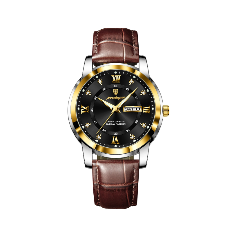 Ready to add a sophisticated touch to your wrist? This luxury men’s watch is the perfect combination of elegance, practicality, and durability. With its stylish leather strap, accurate quartz movement, and versatile features, it’s a watch that fits seamlessly into any lifestyle. Don’t settle for ordinary – choose a watch that’s as functional as it is fashionable. Get yours today and elevate your style with every tick of the clock!
