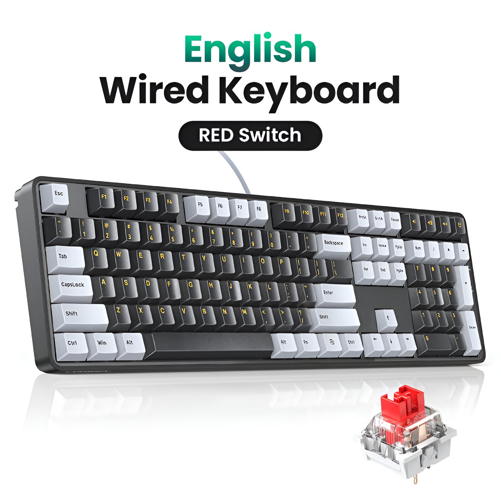Elevate your productivity and gaming sessions with this high-quality mechanical keyboard. Designed with 108 PBT keycaps, a wired connection, and durable red switches, this keyboard offers precision, comfort, and longevity. Compatible with Windows, Mac OS, and other desktop systems, it is perfect for gaming enthusiasts and professionals who demand performance and style.