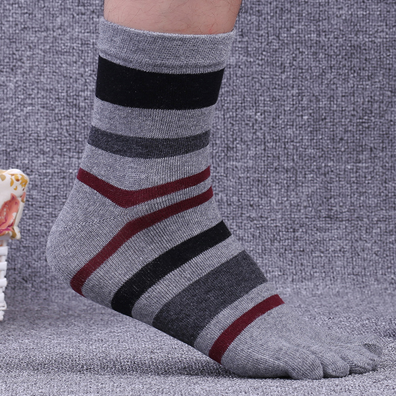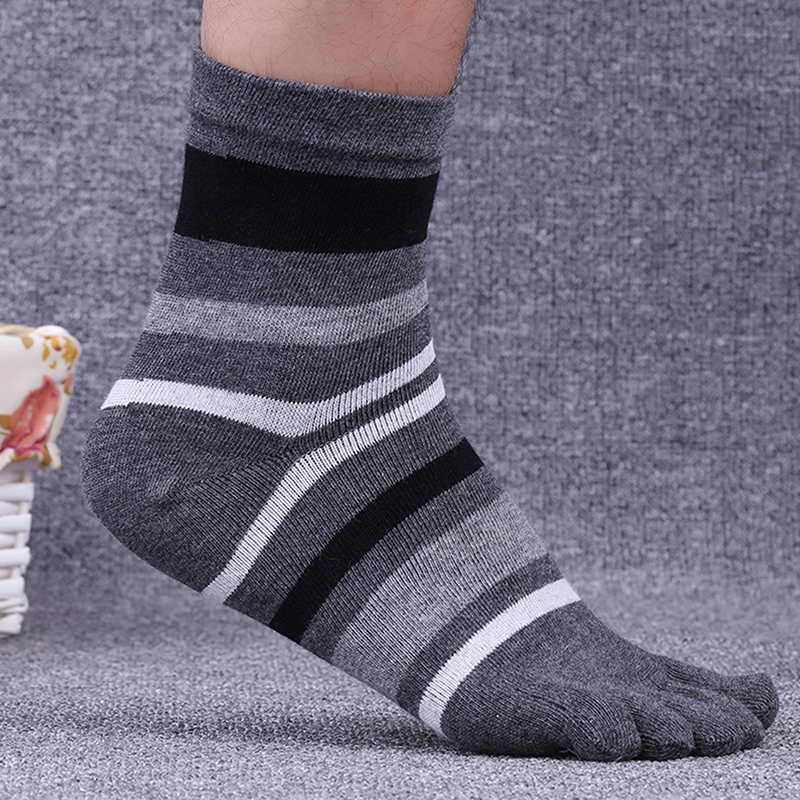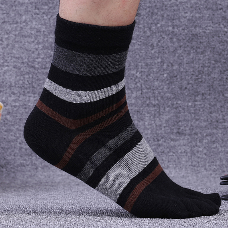 Step into Comfort with Men’s Striped Cotton Toe Socks