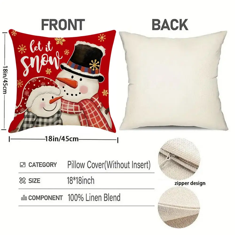 Merry Christmas Pillow Cover – Festive Santa Claus & Snowman Holiday Decor