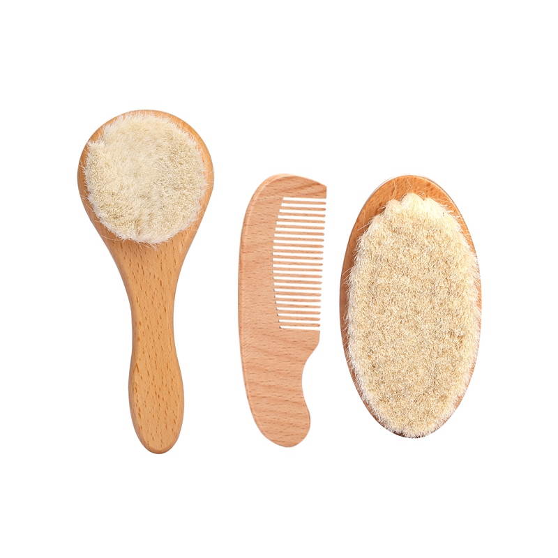Natural Wooden Baby Hair Brush Set – Soft Wool Massage & Bath Brush
