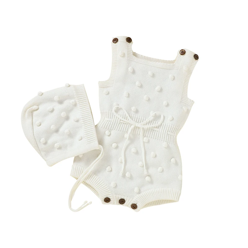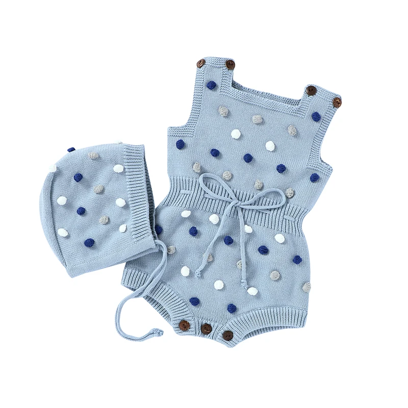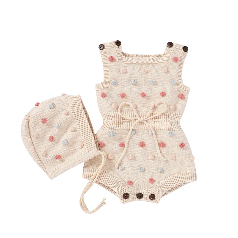 Looking for a baby outfit that’s both stylish and practical? This cotton bodysuit is the answer! The sleeveless design allows for easy movement, while the breathable fabric ensures your baby stays cool during warmer months. Layer it with a cardigan or jacket for cooler weather. Plus, the charming polka dot pattern adds a fun, playful vibe, making your baby stand out in any setting. The matching hat isn’t just adorable, it also keeps your baby’s head protected when outdoors. Easy to wear, easy to wash, and perfect for any occasion – it’s the go-to outfit for parents who want both fashion and function.