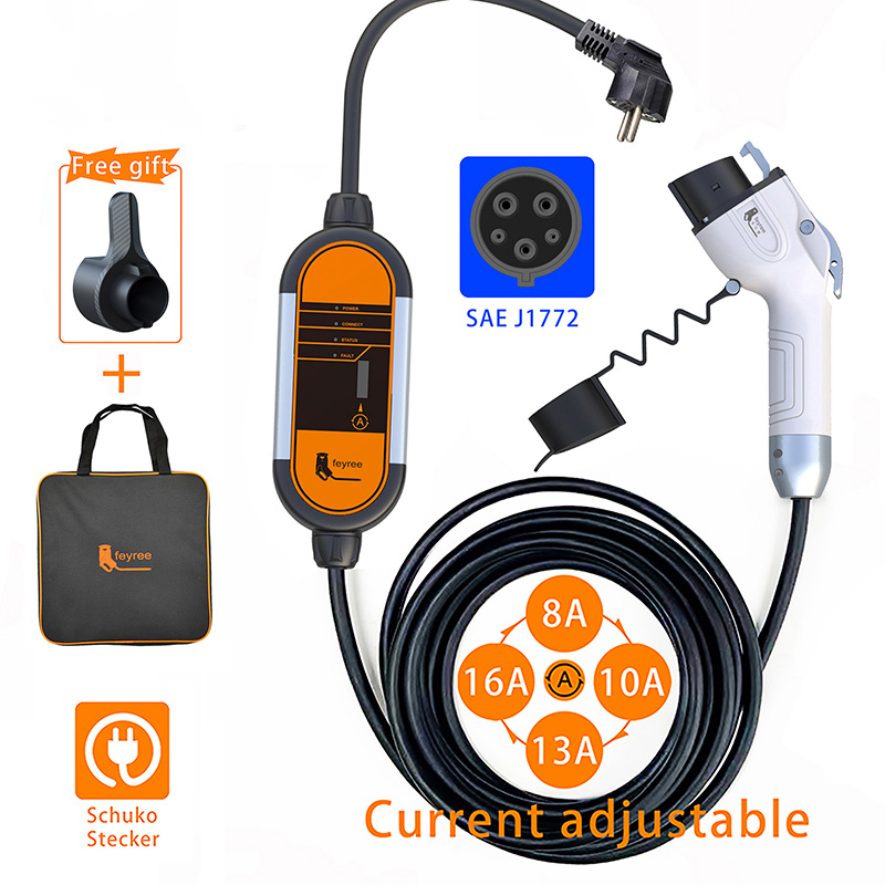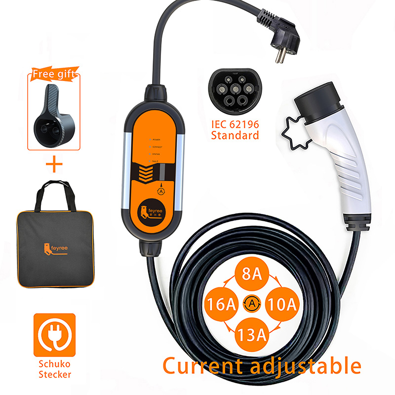 This EV charger is designed with your needs in mind, from its rugged build to its advanced safety features. The Type2 IEC 62196-2 and Type1 J1772 compatibility ensures it works with a wide range of electric vehicles and plug-in hybrids, so you can charge with confidence. With adjustable current settings (8A/10A/13A/16A), you have the flexibility to choose between fast or slower charging modes, adapting effortlessly to different power needs.