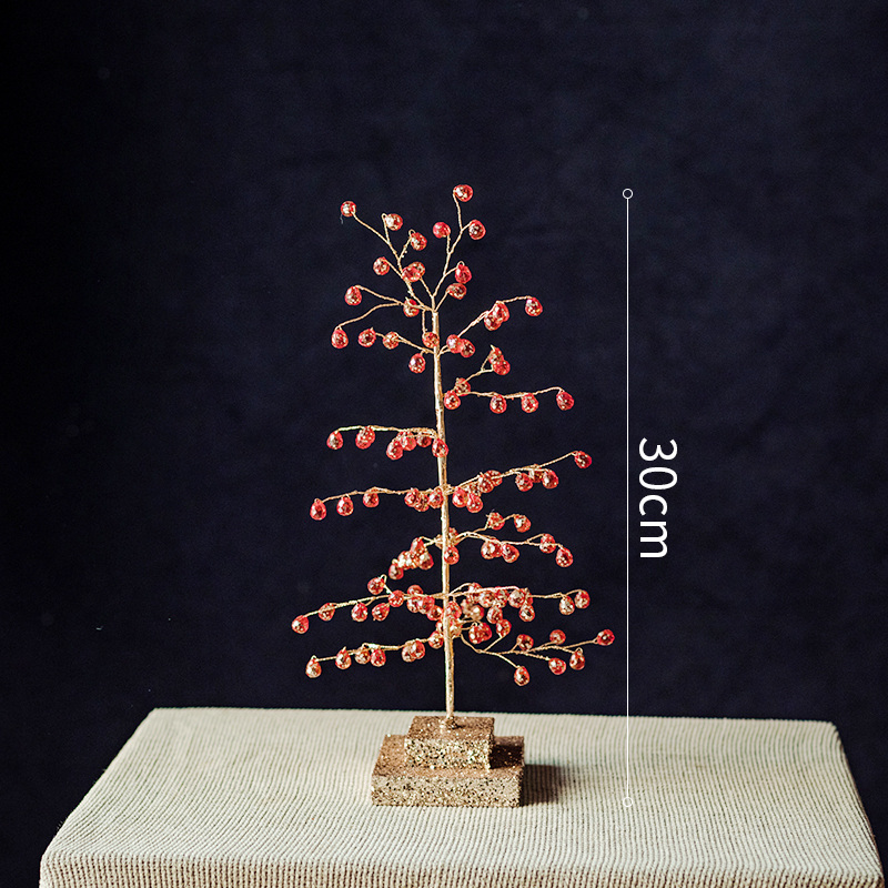 These ornaments stand out with their striking red fruit accents and realistic design, capturing the essence of Christmas in a compact form. The combination of acrylic and iron wire ensures durability while maintaining a lightweight structure. Their ability to enhance a wide range of spaces—from intimate home settings to professional displays—makes them a versatile and timeless decoration. These trees are perfect for creating a cheerful atmosphere that friends, family, and customers will love.