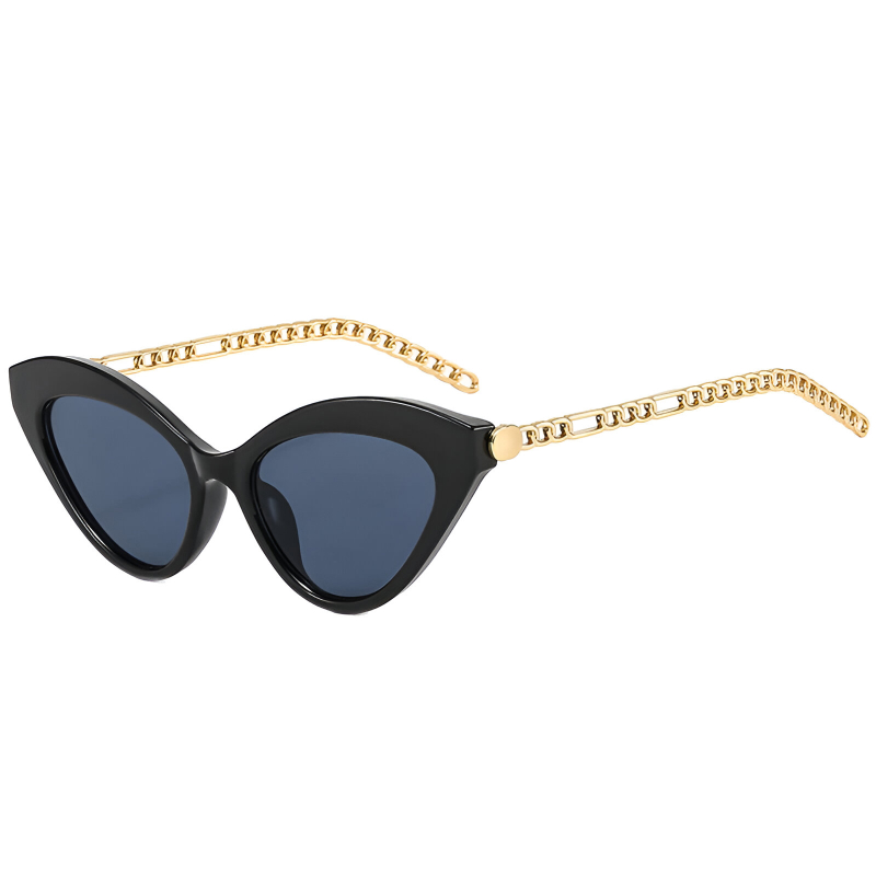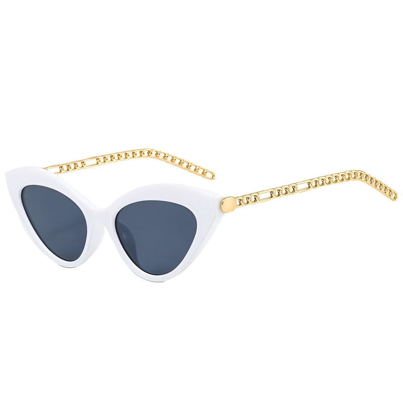 Step into the spotlight with these stunning retro cat eye sunglasses, designed to add a touch of elegance and sophistication to any outfit. Crafted with a metal chain detail and UV400 protection, these sunglasses offer both style and function in one fashionable package. Whether you’re lounging by the pool, strolling through the city, or hitting the beach, these sunglasses are the perfect accessory to elevate your look while protecting your eyes from harmful UV rays.